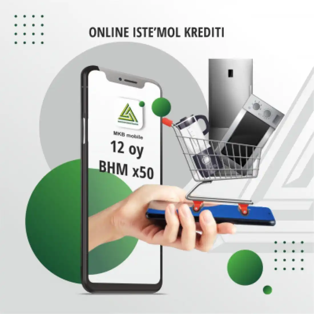 “MKB mobile” ilovasi orqali 12 oy muddatgacha eng kam ish haqining 50 barobari miqdorida skoring tahlili asosida sugʼurta polisi taʼminoti bilan oferta shartnomasini tasdiqlagan holda “Onlayn isteʼmol krediti” ajratiladi.