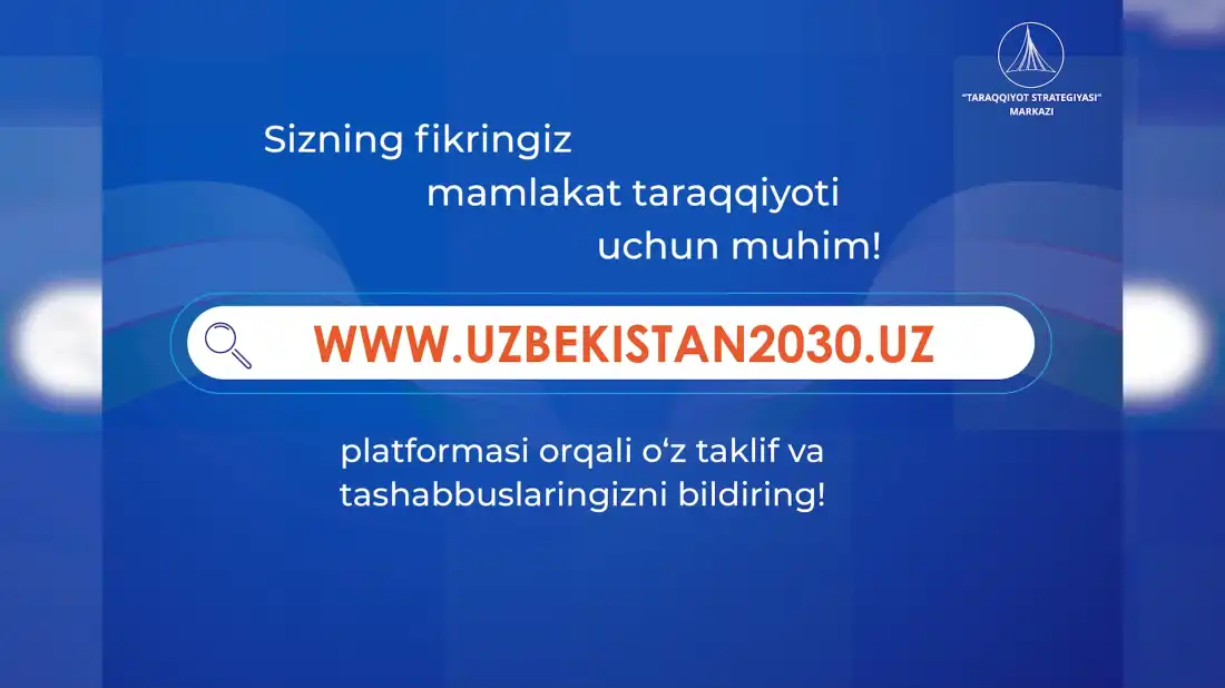 As you know, the President of the Republic of Uzbekistan Shavkat Mirziyoyev, in his Address on December 26, 2025, emphasized the task of revising the "Uzbekistan - 2030" strategy. Currently, an improved draft of the "Uzbekistan - 2030" Strategy has been developed and re-submitted for discussion.