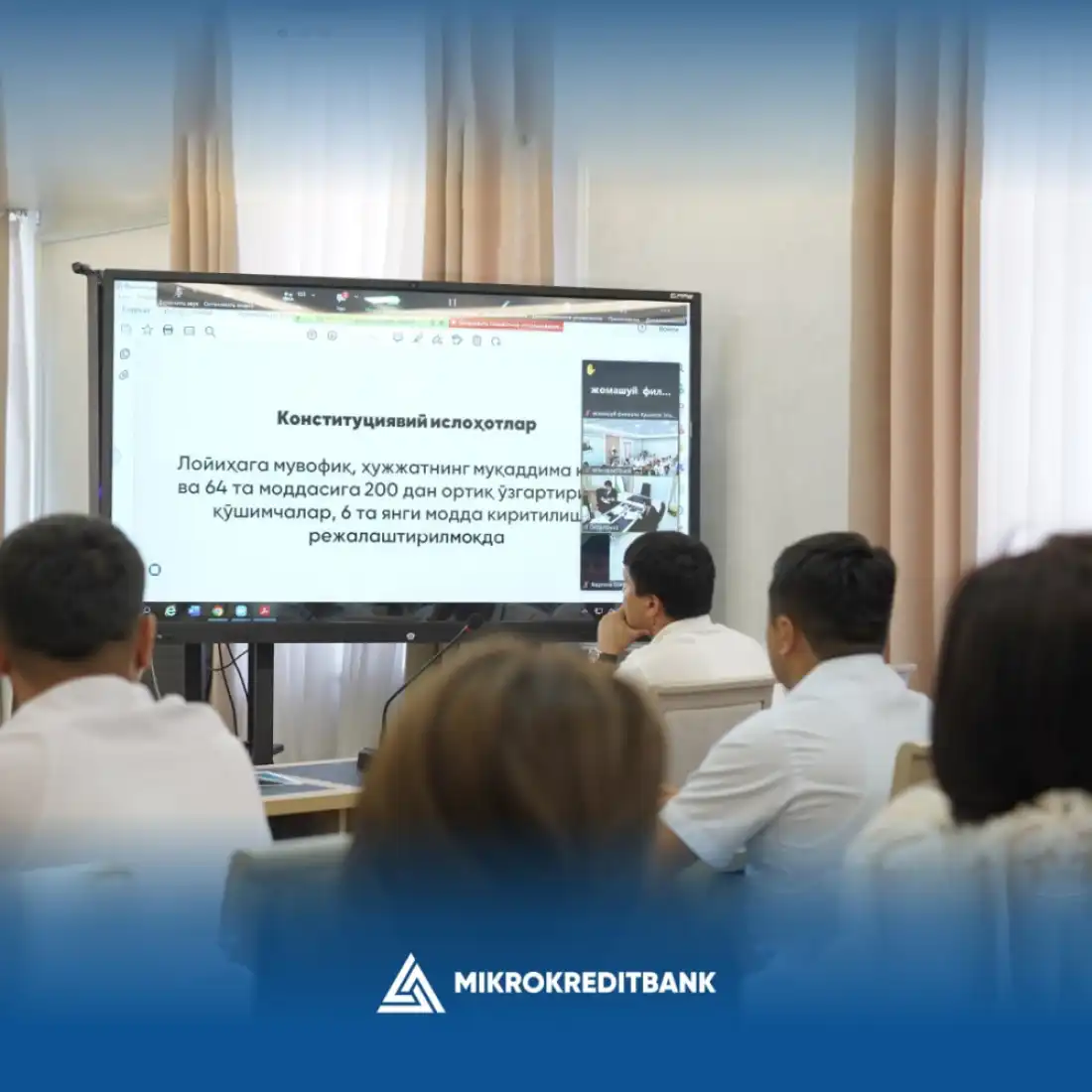 Микрокредитбанкда Конституцияга киритилаётган ўзгаришлар муҳокамасига бағишланган тадбир бўлиб ўтди.