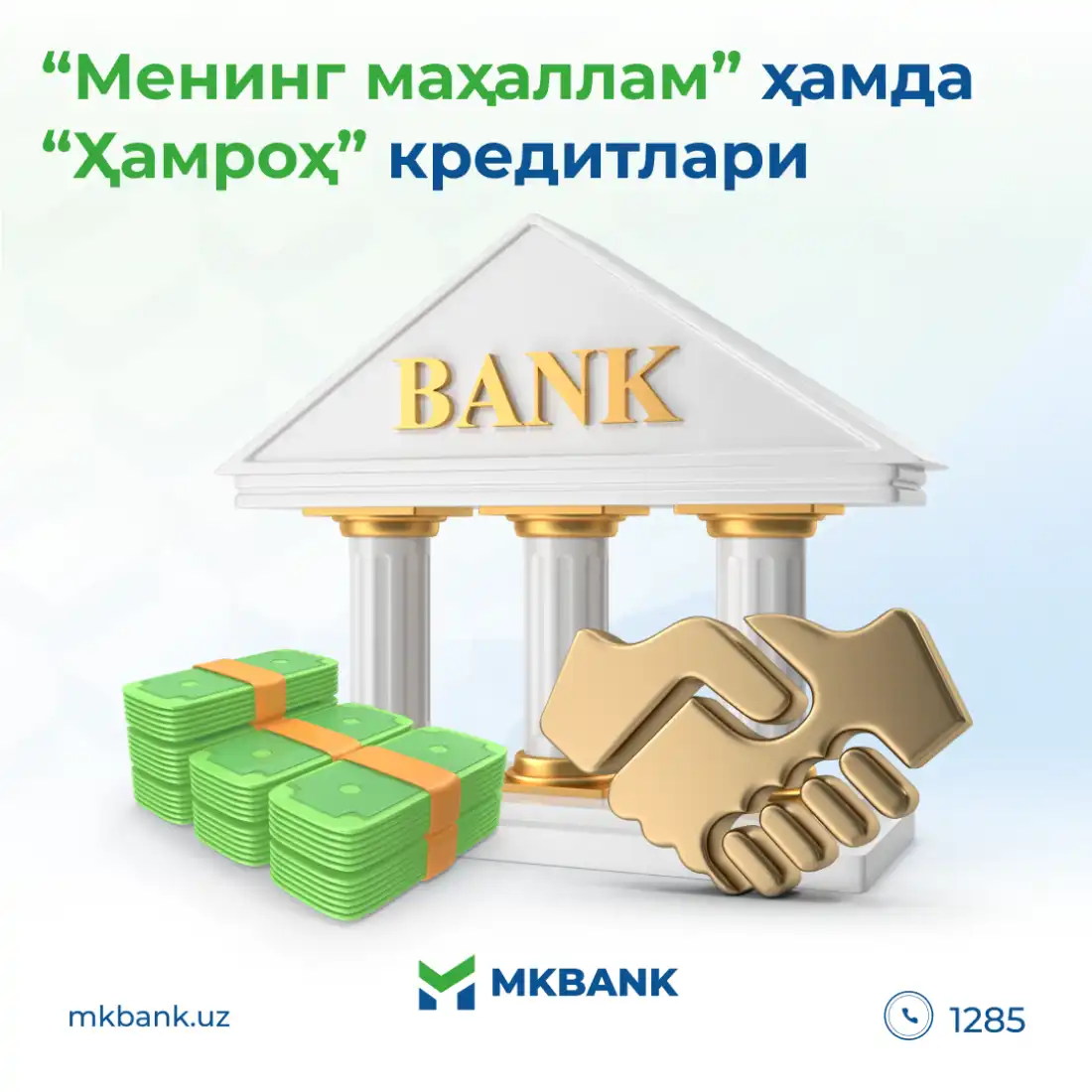 Микрокредитбанк томонидан маҳаллалардаги тадбиркорликни ривожлантириш ва аҳоли бандлигини ошириш мақсадида янги молиявий хизматлар жорий этилди. Эндиликда маҳалла банкирлари орқали фуқаролар ва тадбиркорлар “Менинг маҳаллам” ҳамда “Ҳамроҳ” номли махсус кредит маҳсулотларидан фойдаланишлари мумкин.