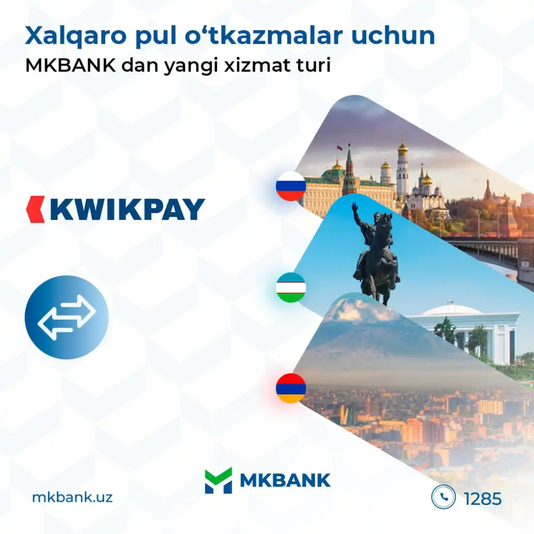 Қадрли МКБАНК мижозлари! Банкимизда KWIKPAY — халқаро пул ўтказмалари хизмати йўлга қўйилганлигини маълум қилишдан мамнунмиз!