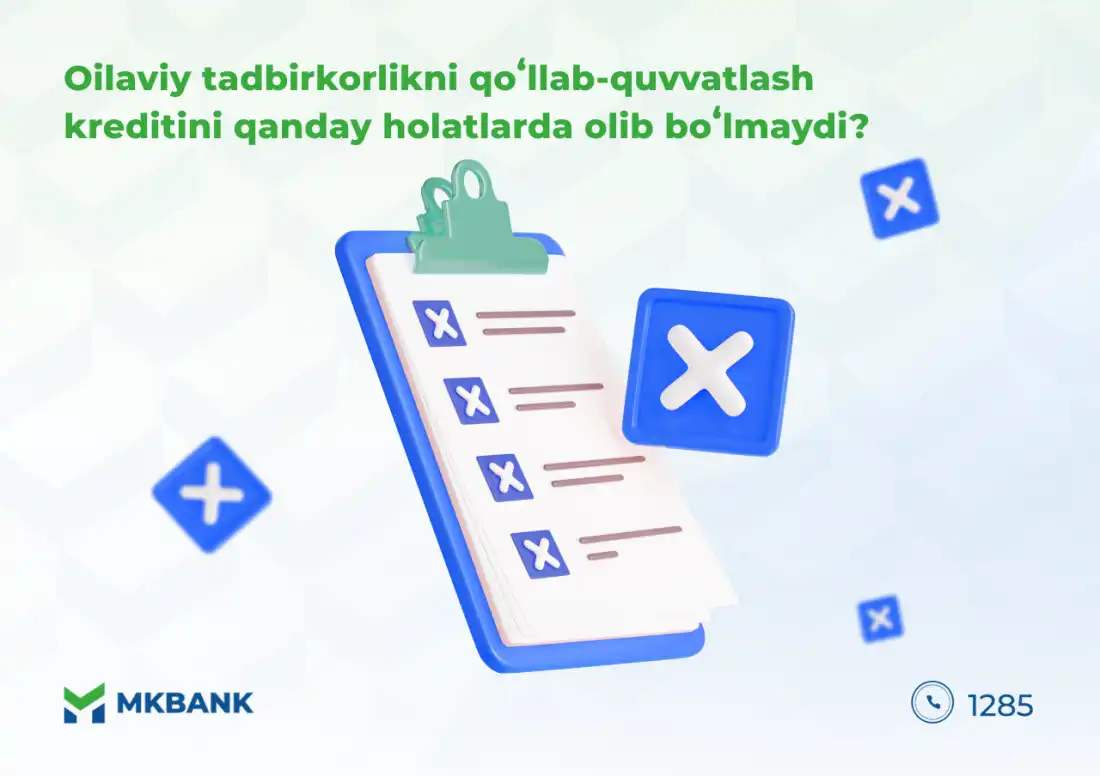 Бугун аҳоли орасида Оилавий тадбиркорликни ривожлантириш дастурлари доирасида қандай ҳолатларда кредит олиш имконияти мавжуд эмаслиги ҳақида турли саволлар пайдо бўлмоқда. Қуйида ана шу саволга жавоб бериб ўтмоқчимиз.