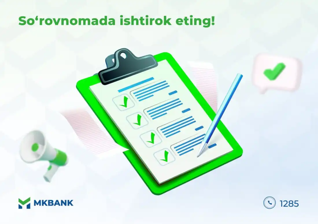 МКБАНКда коррупцияни келтириб чиқарувчи сабаб ва шарт-шароитларни ўрганиш мақсадида жамоатчилик ўртасида сўровнома ўтказилмоқда.