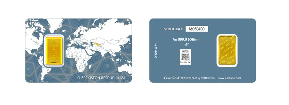 Олтин қуймалар Италиянинг "Certiline Srl." компанияси билан хамкорликда ишлаб чиқилган махсус қадоқларда муомалага чиқарилади.