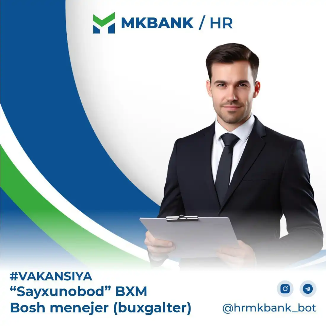 MKBANK Sirdaryo viloyati hududiy boshqarmasi “Sayxunobod” bank xizmatlari markaziga Bosh menejer (buxgalter) lavozimiga tanlov asosida ishga taklif etadi.