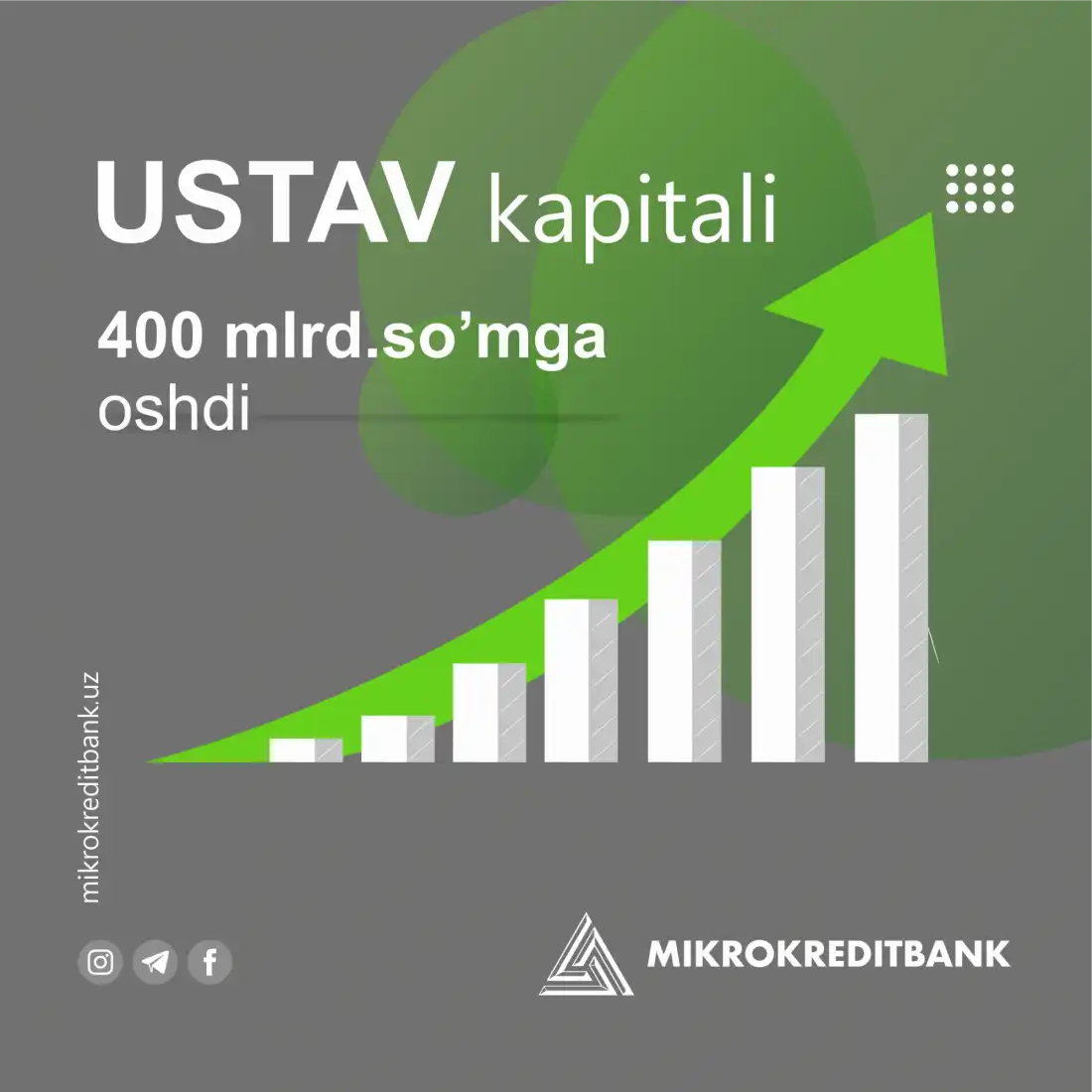 Bu kabi oʻzgarishlar samarasi Mikrokreditbank ustav kapitali oʻsishida ham yaqqol namoyon boʻlmoqda.