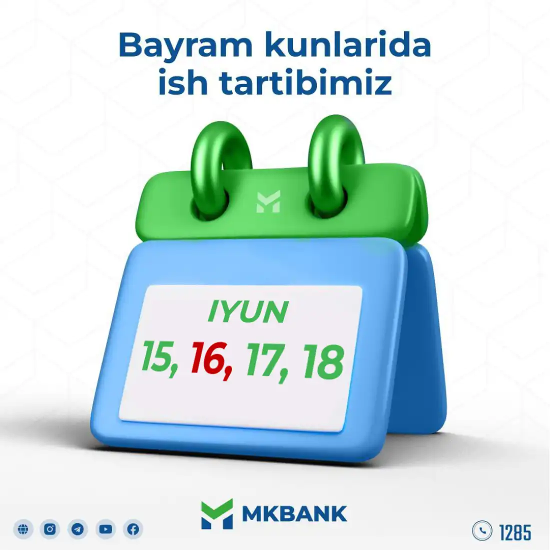 Bayram munosabati bilan bizning ish tartibimiz quyidagicha: