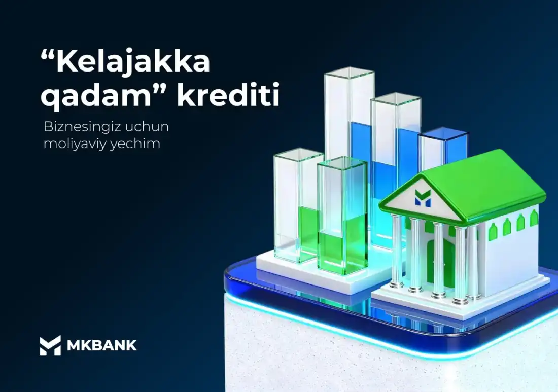 MKBANKdan “Kelajakka Qadam” krediti bilan siz oziq-ovqat, mebel, tikuvchilik, IT, turizm, konsalting va boshqa sohalarda asosiy vositalarni sotib olish va aylanma mablag‘larni to‘ldirish imkoniga egasiz.