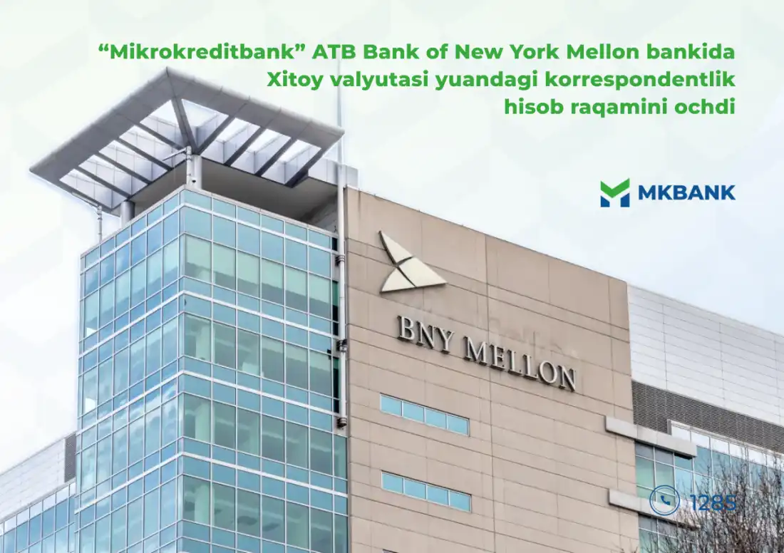 Joriy yilning 31-iyul kuni “Mikrokreditbank” ATB va AQShning yetakchi moliyaviy instituti bilan hamkorlik doirasida BNY Mellon bankida Xitoy yuani (CNY)da korrespondentlik hisob raqami ochildi.