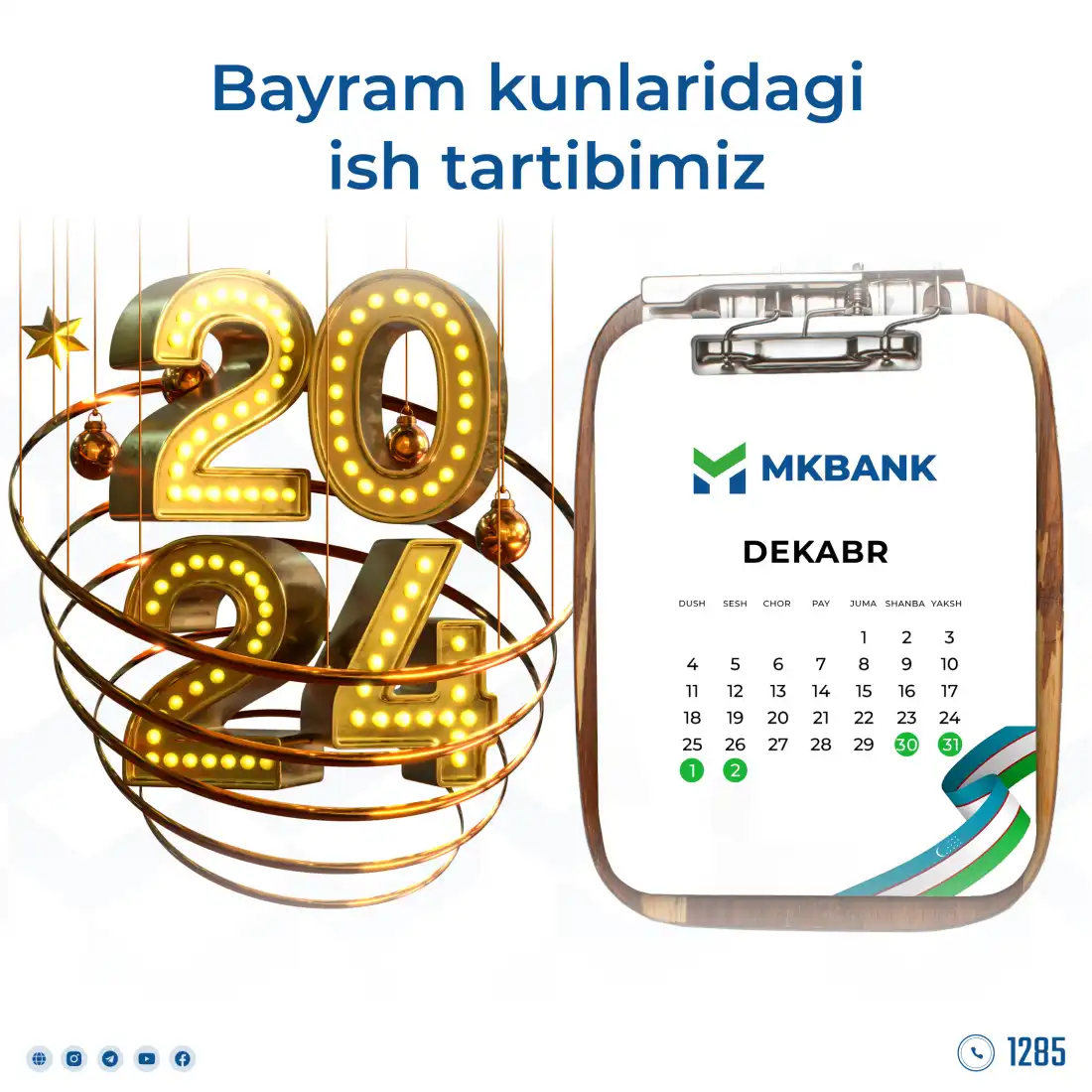 30-31-dekabr, 1,2-yanvar kunlari ishlaydigan shoxobchalar haqida batafsil