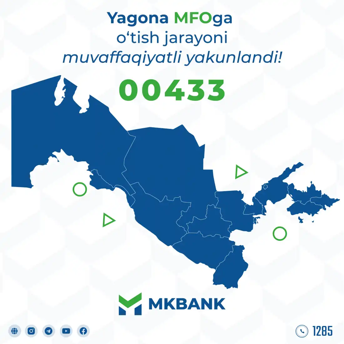 Аyni paytda Mikrokreditbank tasarrufidagi 20 ta Bank xizmatlari ofisi, 119 ta Bank xizmatlari markazlari yagona MFOga oʼtish jarayonlarini muvaffaqiyatli yakuniga yetkazildi.